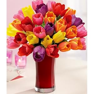 Purchase 30 Multi-Colored Valentine's Tulips (with FREE glass vase) - Flowers | Where to Purchase and great price - We have all right price for