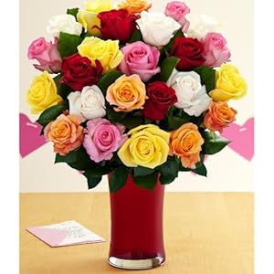 Two Dozen Long Stemmed Valentine's Day Rainbow Roses (with FREE glass vase) - Flowers Review